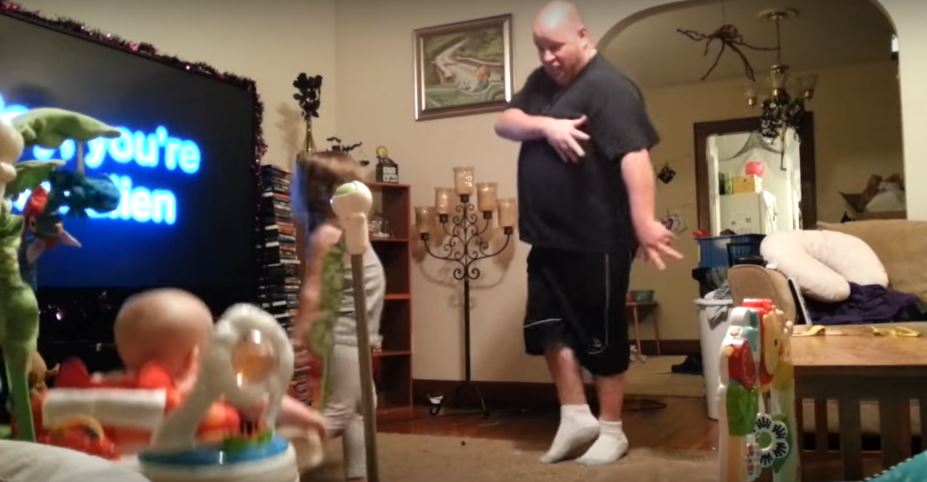 His robot dance is life! He lets loose completely. He makes every possible effort to entertain his babies!